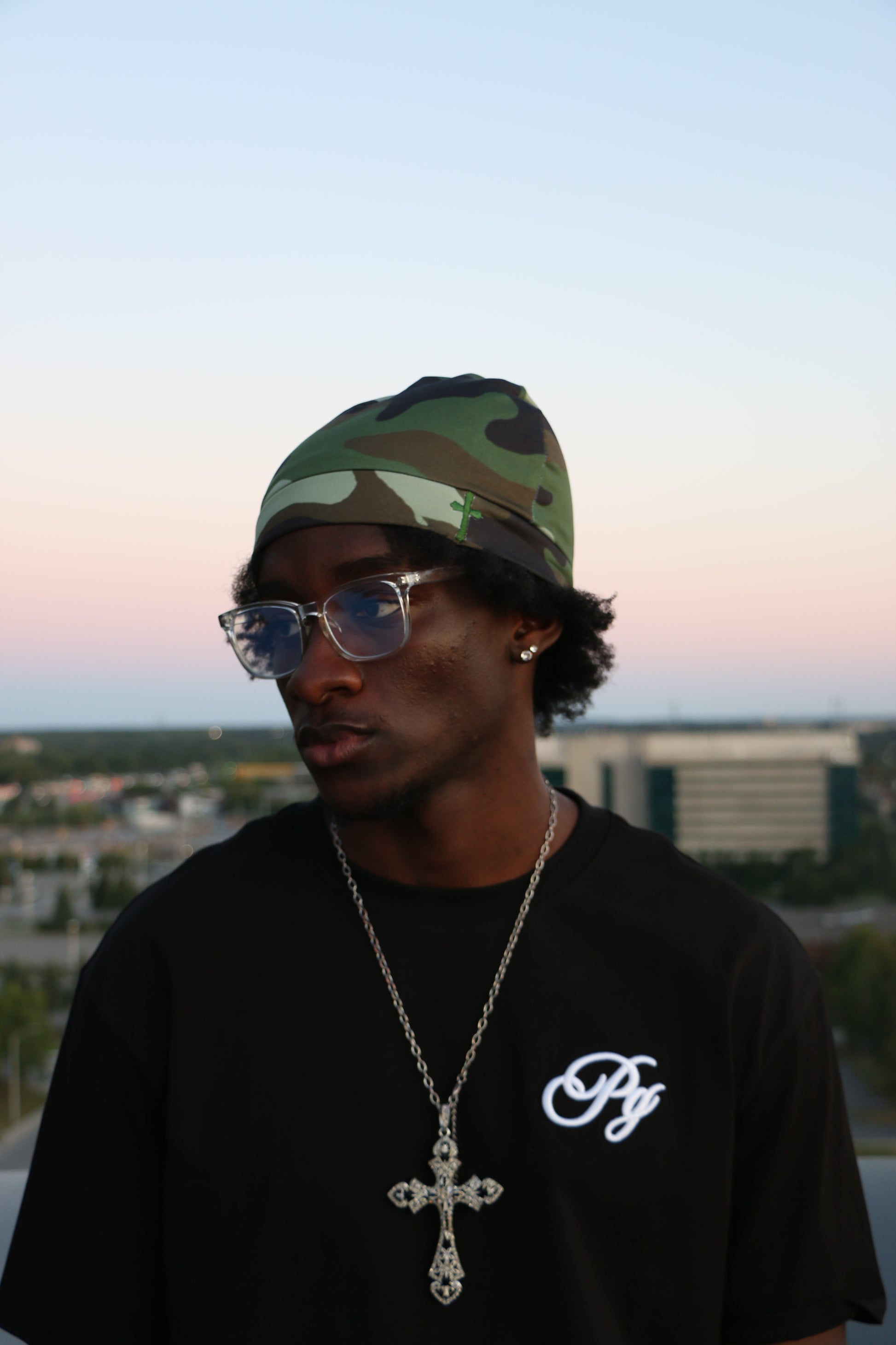 Green Camo Cross Satin lined fitted cap